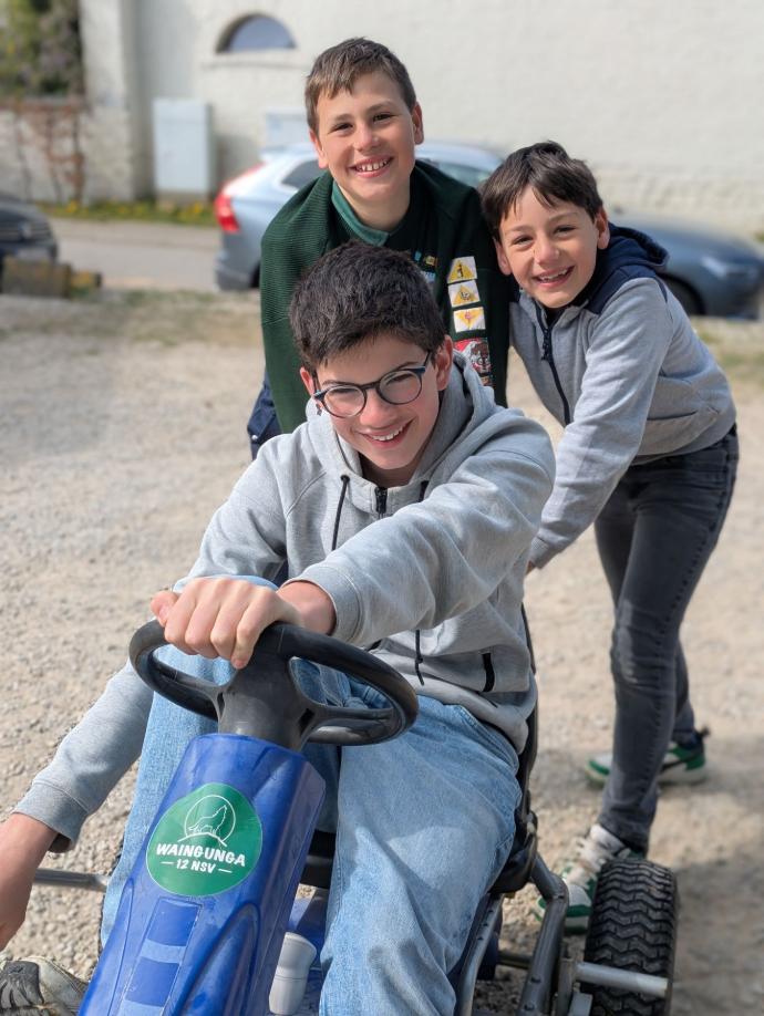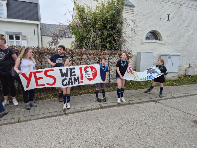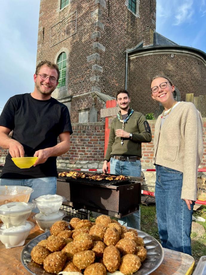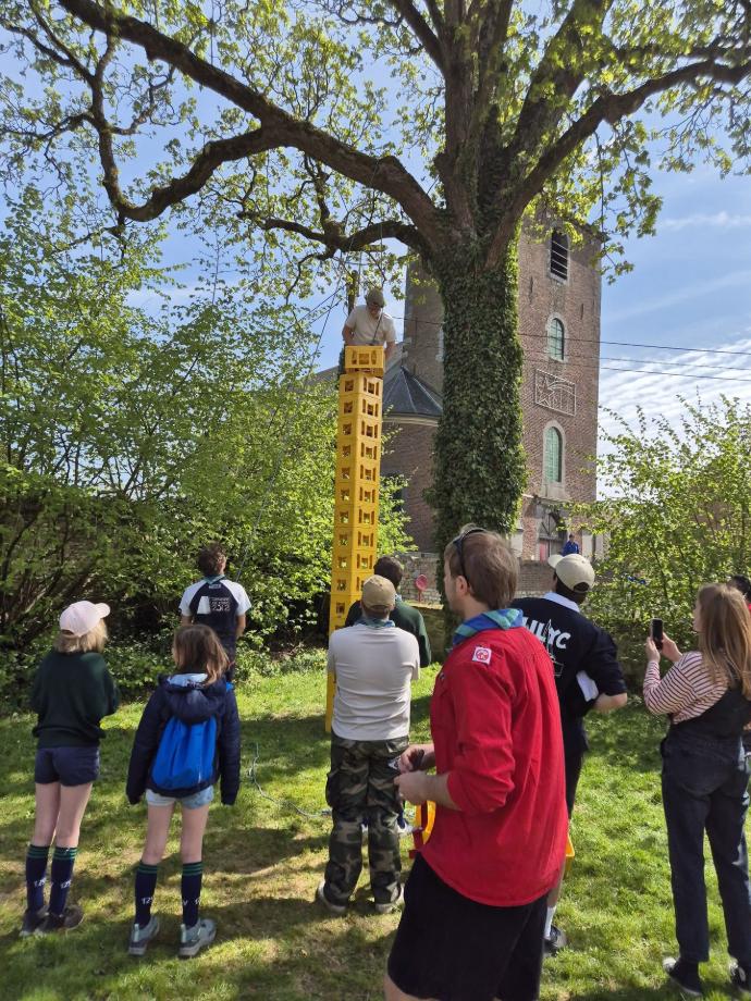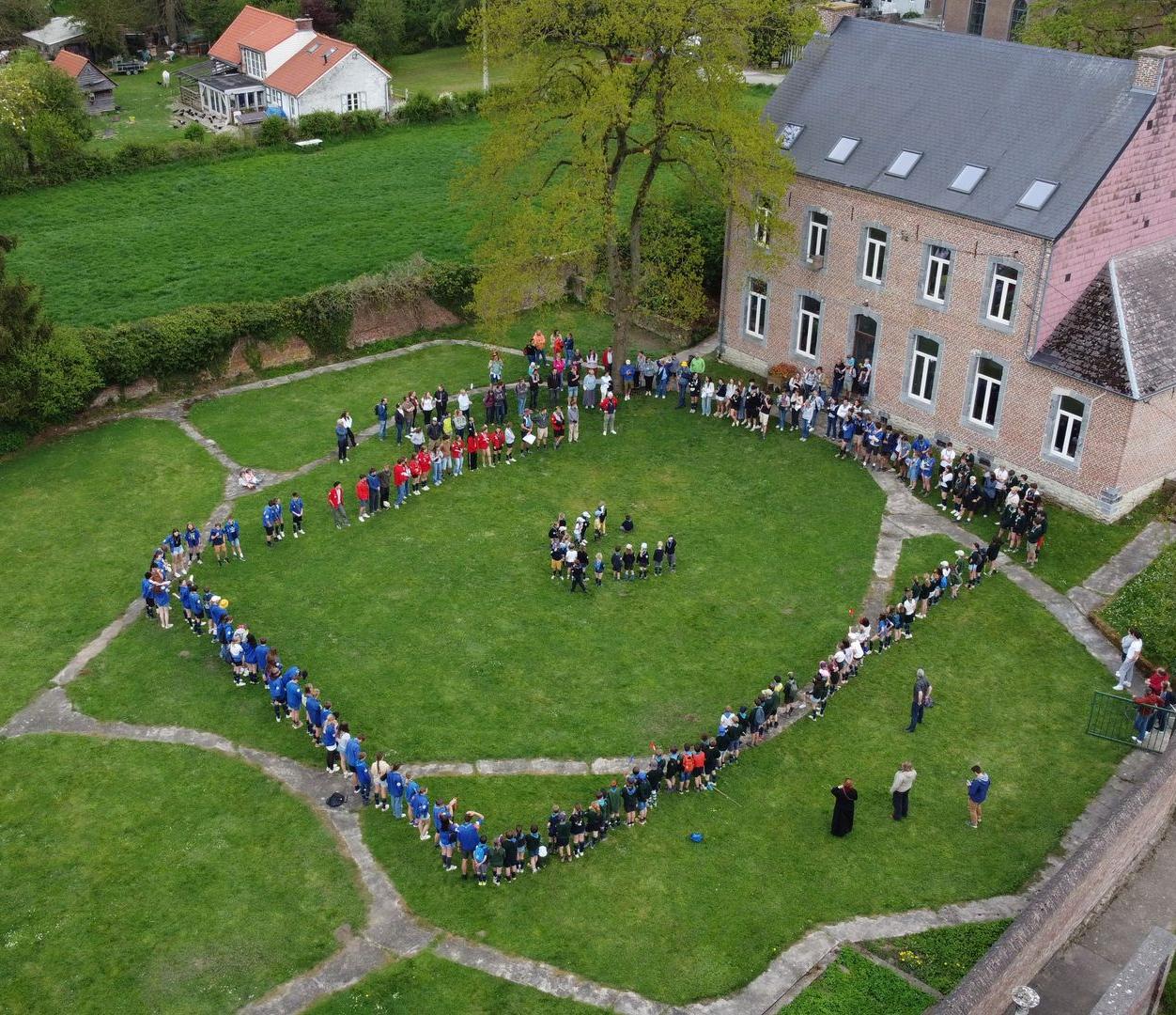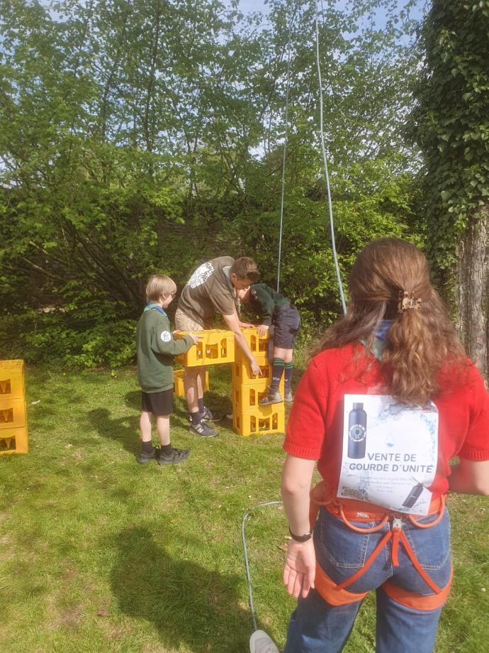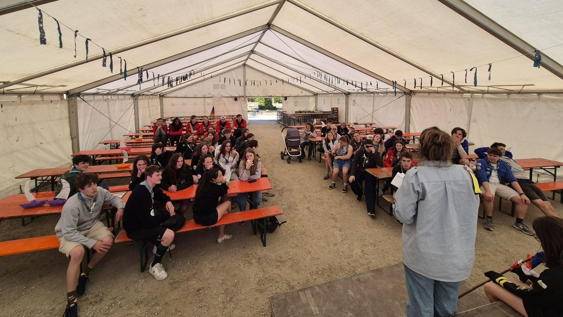 Dernier petit carré d’unité et voilà l’heure de l’apéro et du barbecue dont la cuisson est assurée avec amour par notre équipe de routiers (merci à eux). Une fois les estomacs bien remplis, quelques dernières épreuves attendent les skippers fatigués : une nouvelle petite traversée rythmée par un quiz musical, un jeu d’équilibre, un kahoot… l’équipe Arc-en-Ciel a remporté le délicieux panier garni de produits frais offerts par Céline de la ferme de Corroy-le-Grand (merci à elle). Enfin l’heure tant attendue des desserts est arrivée, mais il faudra patienter un peu car le podium est soudain envahi par la troupe Phoenix et quelques guests pour un show surprise, juste avant une danse par les staffs baladins et les pis.