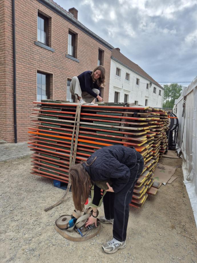 Vendredi 18 avril, Place Saint-Martin, les premières paires de bras s’activent pour le montage du chapiteau et la livraison des boissons. Ça décharge, ça aligne, ça hisse, ça fixe, ça enfonce et ça déplie dans tous les sens.